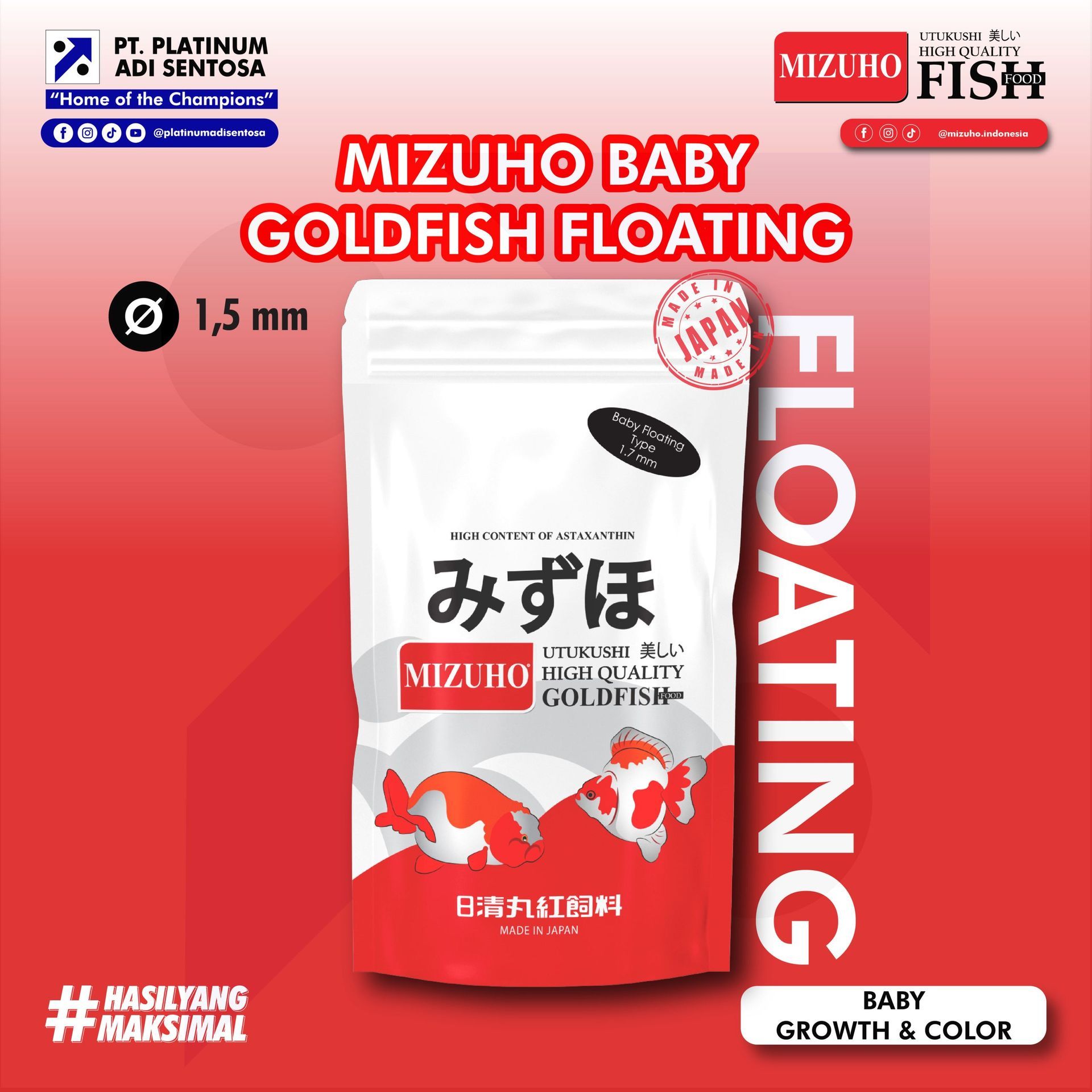 MIZUHO Baby goudvisvoer 300 gr. Drijvend